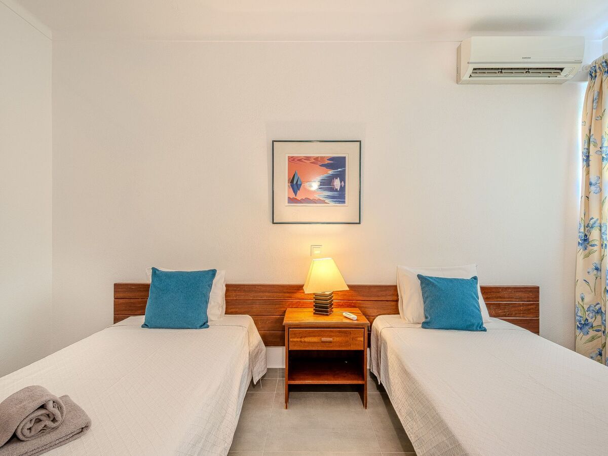 1 chambre avec 2 lits (90 cm, longueur 200 cm), air-conditionné et chauffage à air chaud.