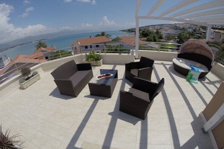 La villa dispose de trois chambres : deux avec lits doubles et une avec deux lits simples, pouvant accueillir de 6 à 8 personnes. Une terrasse au dernier étage vous permettra de profiter d'une vue imprenable sur la mer.