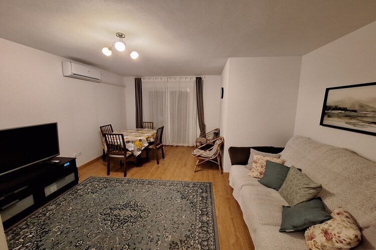 Ce spacieux appartement de vacances climatisé, avec balcon donnant sur le pignon, offre une vue partielle sur la mer et comprend trois chambres. Il se compose de trois lits doubles, d'un canapé, d'un salon, d'une télévision à écran plat et d'une cuisine entièrement équipée. La cuisine comprend une plaque de cuisson, un four, un réfrigérateur, un lave-vaisselle, des ustensiles de cuisine, une bouilloire, un grille-pain, un micro-ondes, une cafetière et un grill électrique.