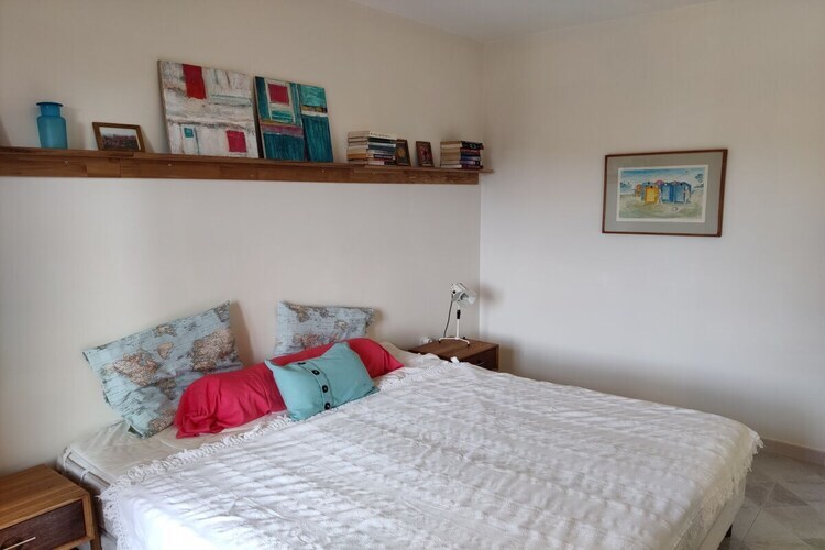 Une grande baie vitrée coulissante sépare le salon de la loggia couverte, meublée de mobilier de jardin et de transats. L'appartement comprend également un jardin privatif avec des espaces ombragés. L'appartement de plain-pied dispose d'une chambre avec un lit double (200 cm x 180 cm). Le salon est équipé d'un canapé-lit (200 cm x 140 cm). La climatisation est fournie.