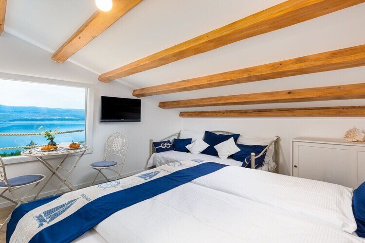 La Villa Mare s'étend sur deux étages et allie fonctionnalité et confort. Le rez-de-chaussée comprend un séjour avec cuisine et coin repas. À l'étage, une chambre pour trois personnes est équipée d'un lit double et d'un lit simple. Cette chambre dispose d'une salle de bains privative avec douche. Des toilettes séparées sont également à la disposition des hôtes dans le jardin. Le vaste espace extérieur de 5 000 m² offre une vue imprenable sur la mer. Les hôtes ont accès à une piscine, une table de ping-pong, des buts de football et un terrain de volley-ball.