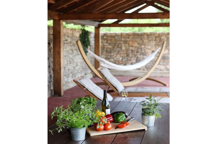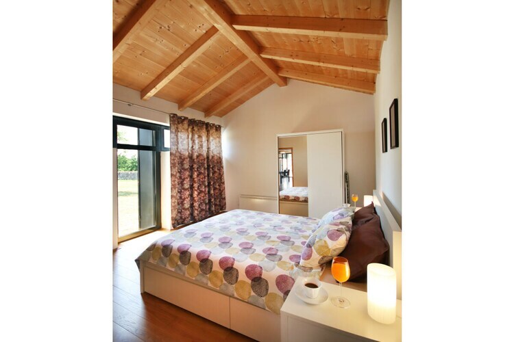 La pièce principale se compose d'un vaste séjour lumineux avec deux grandes fenêtres offrant une jolie vue sur le jardin. La maison est équipée d'une télévision, du Wi-Fi et d'une antenne satellite. Un coin repas avec table pour six personnes, un bar et une cuisine sont intégrés au séjour. La cuisine est entièrement équipée avec réfrigérateur, congélateur, four, lave-vaisselle, cafetière à filtre, etc. Un escalier en bois avec éclairage LED mène du séjour à une mezzanine de 22 m². La mezzanine est meublée d'un lit double avec tables de chevet et d'une armoire. Une partie de la mezzanine est aménagée en coin salon, idéal pour lire et se détendre. La maison est climatisée et dispose d'un poêle à bois pour l'hiver.