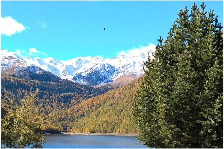 Un séjour avec kitchenette bien équipée, canapé confortable, télévision par satellite, poêle à bois et banquette, accès (avec moustiquaire) à un grand balcon ensoleillé offrant une vue imprenable et meublé. Chambre 1 avec un lit double (190x200cm) et accès internet.