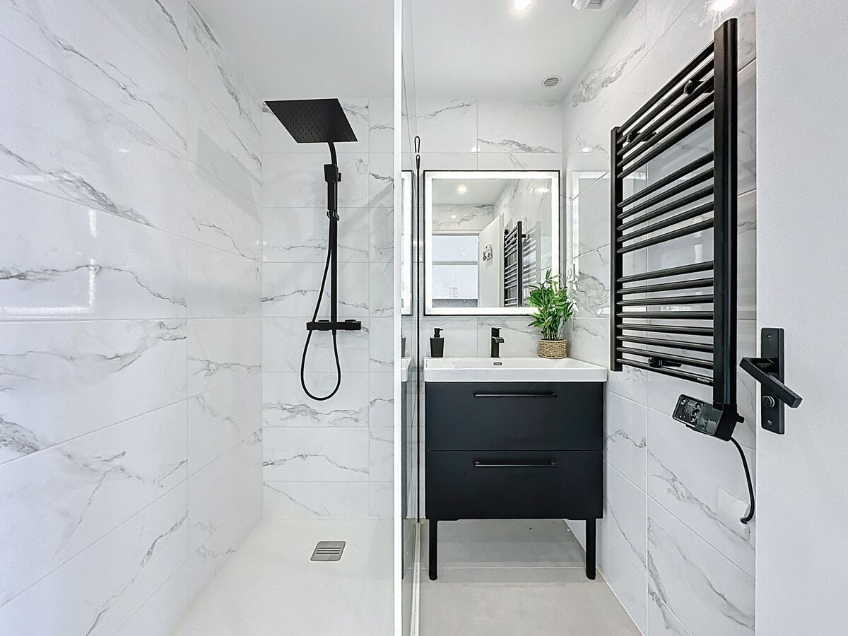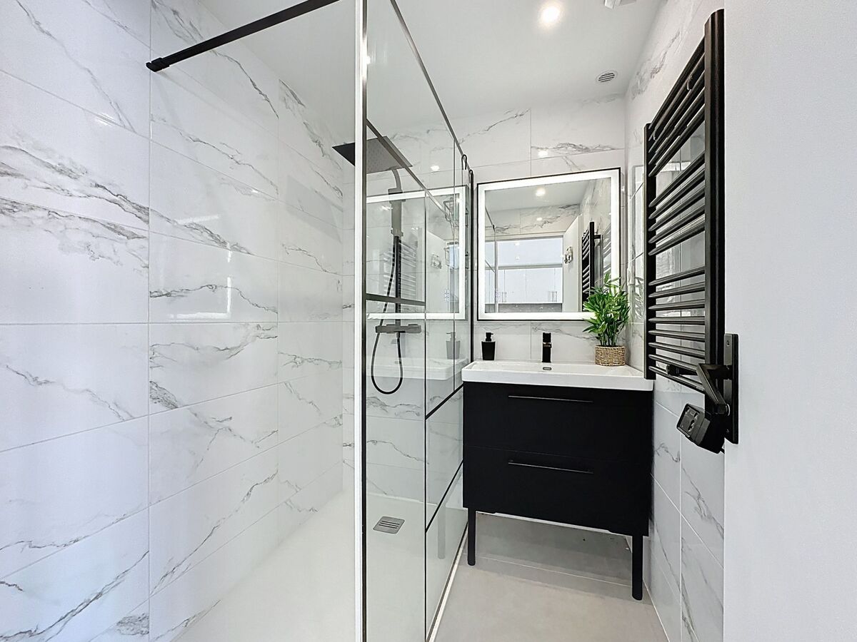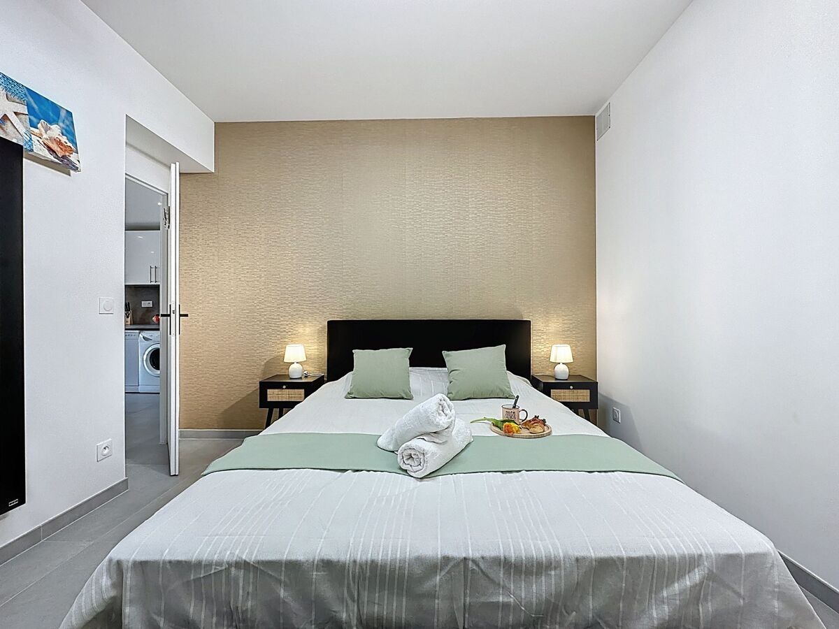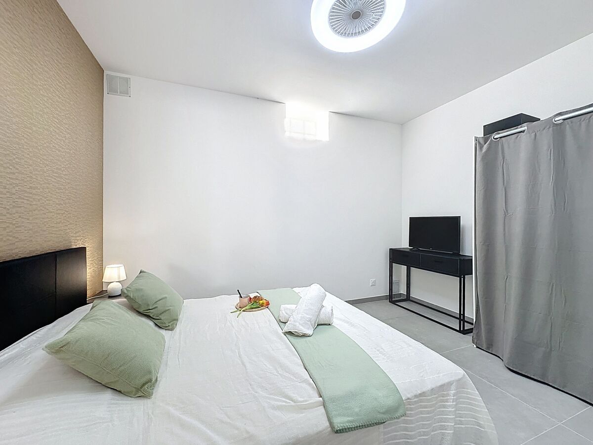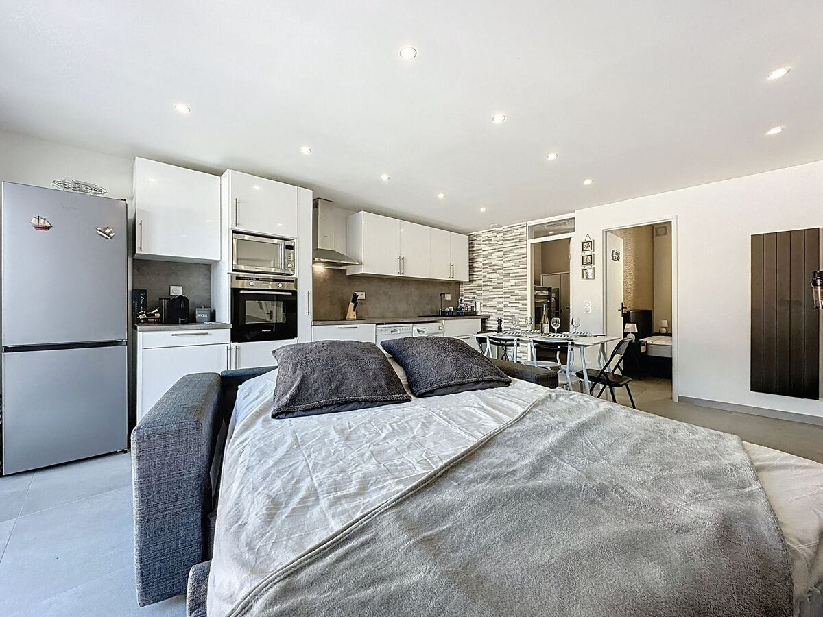 Rénovée en 2025, aménagement moderne: séjour/salle à manger avec 1 divan-lit double (1 x 160 cm, longueur 200 cm), TV (écran plat).