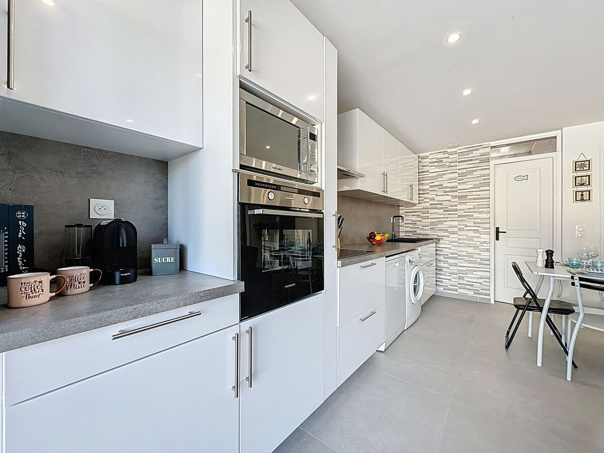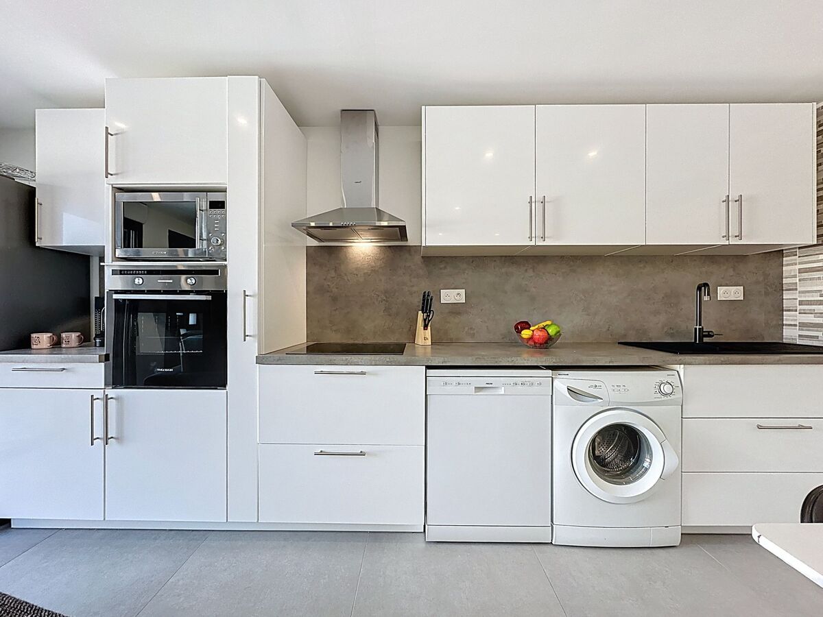 Cuisine ouverte (four, lave-vaisselle, 1 plaques à induction, 3 feux, grille-pain, bouilloire électrique, micro-ondes, cafetière électrique, Capsules pour machine à café (Nespresso) (NON INCLUSES)).