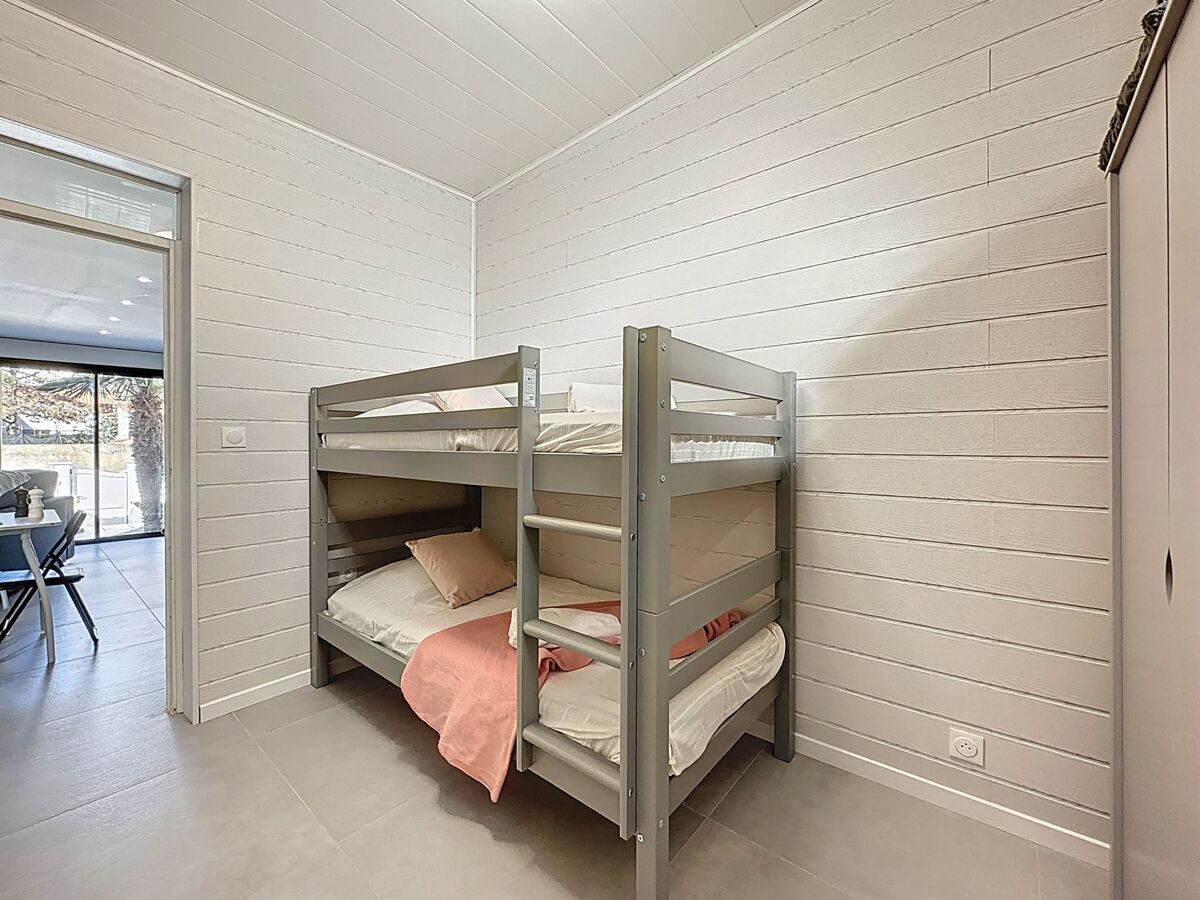 1 petite chambre, sans fenêtre avec 1 x 2 lits superposés (90 cm, longueur 190 cm).