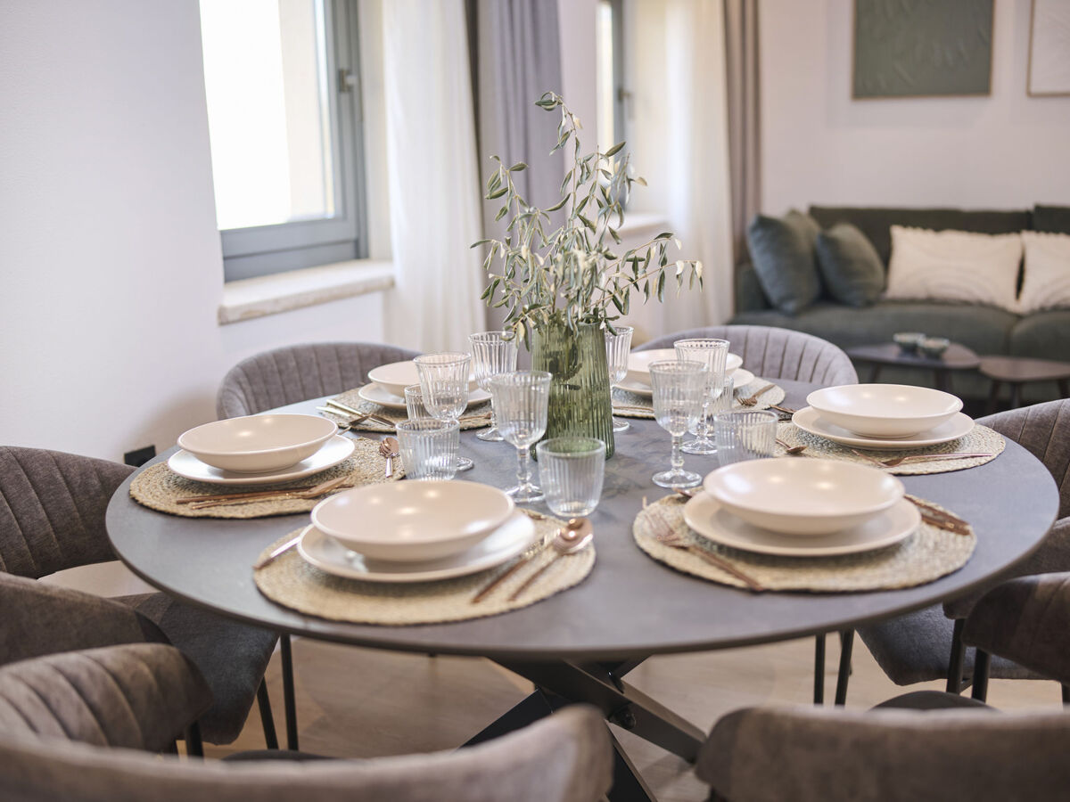 Cuisine ouverte (four, lave-vaisselle, 4 plaques à induction, grille-pain, bouilloire électrique, micro-ondes, congélateur, cafetière électrique).