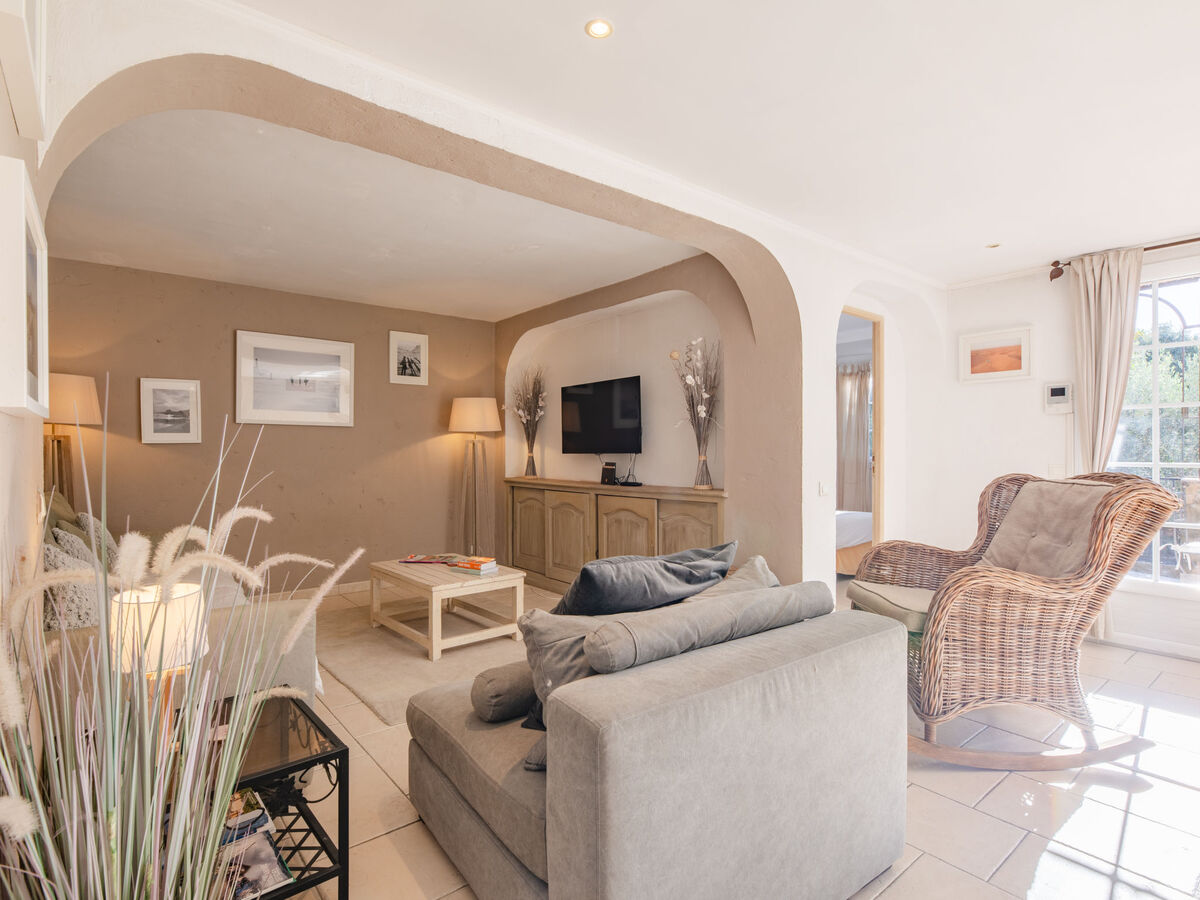 À 6 km du centre de Grimaud, à 1.5 km du centre de Port Grimaud, à 10 km du centre de Saint Tropez, dans un quartier résidentiel, à 1 km de la mer.