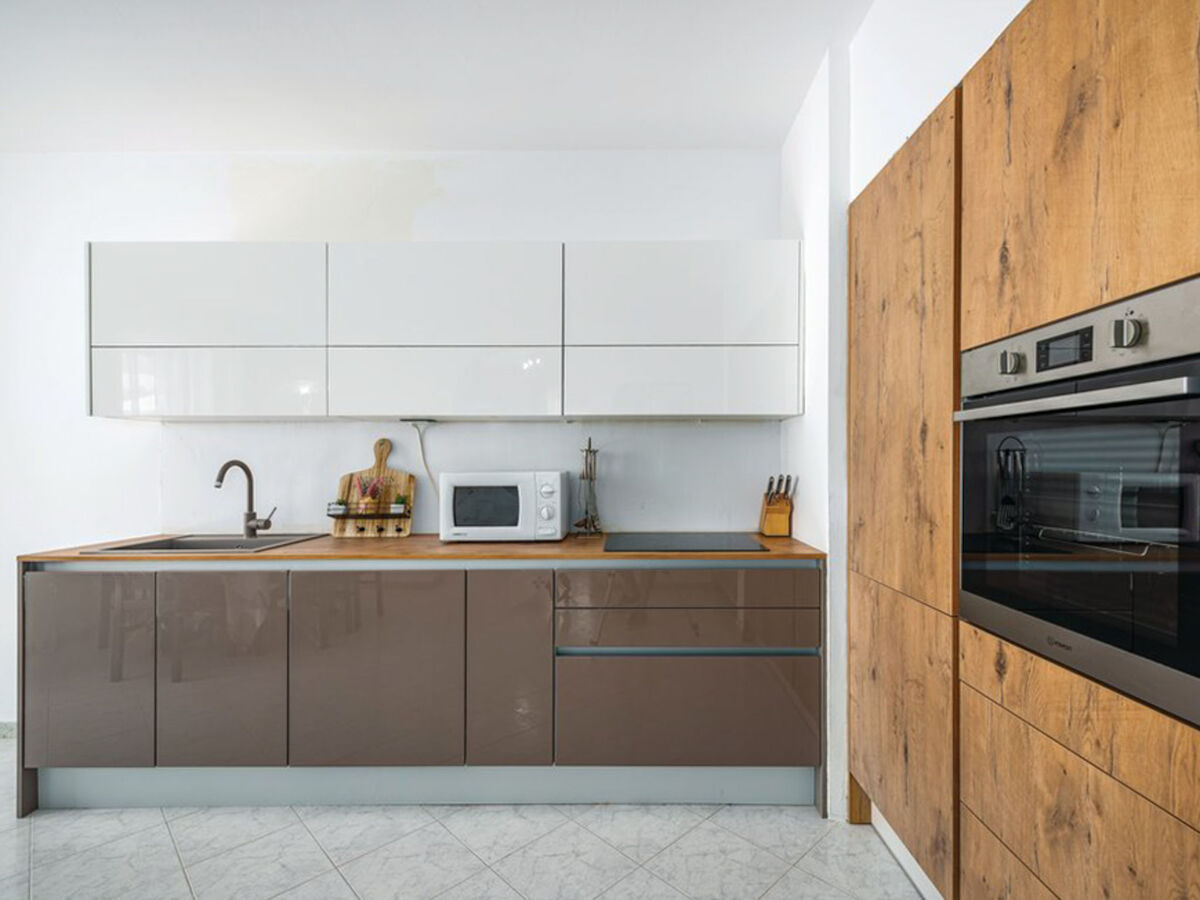 Cuisine ouverte (lave-vaisselle, 4 plaques vitrocéramiques, bouilloire électrique, micro-ondes, congélateur, cafetière électrique).