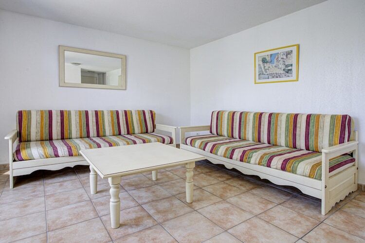 , cuisine ouverte(bouilloire, grille-pain, cafetière/percolateur, micro ondes, lave-vaisselle , réfrigérateur, congélateur, ), salle à manger-salon(canapé-lit double, TV, table), chambre(lit double), chambre(lit simple, lit simple), salle de bains(baignoire, lavabo, WC), terrasse, parking, piscine(partagé avec d'autres clients), fer à repasser