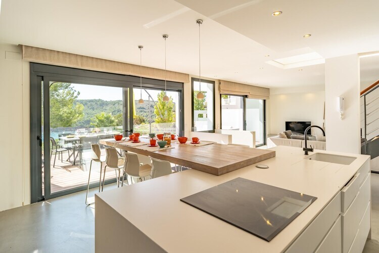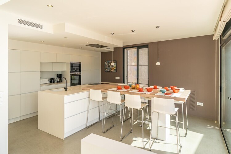 La cuisine américaine de la villa est entièrement équipée : plaque de cuisson vitrocéramique, réfrigérateur, micro-ondes, four, congélateur, lave-vaisselle et tous les ustensiles nécessaires. Vous profiterez également de petits appareils électroménagers pratiques, comme une cafetière, une bouilloire, un grille-pain et un presse-agrumes.