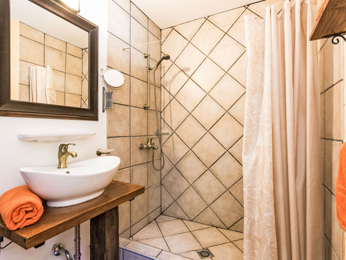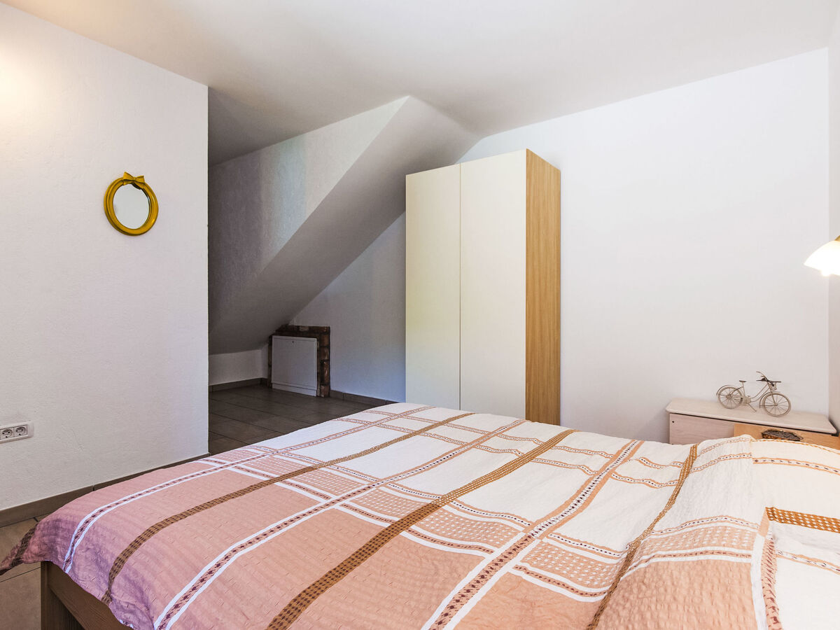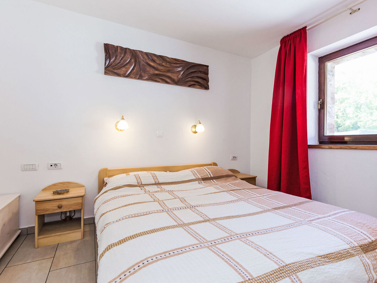 1 chambre avec 1 grand-lit (180 cm, longueur 200 cm), douche/WC et air-conditionné.