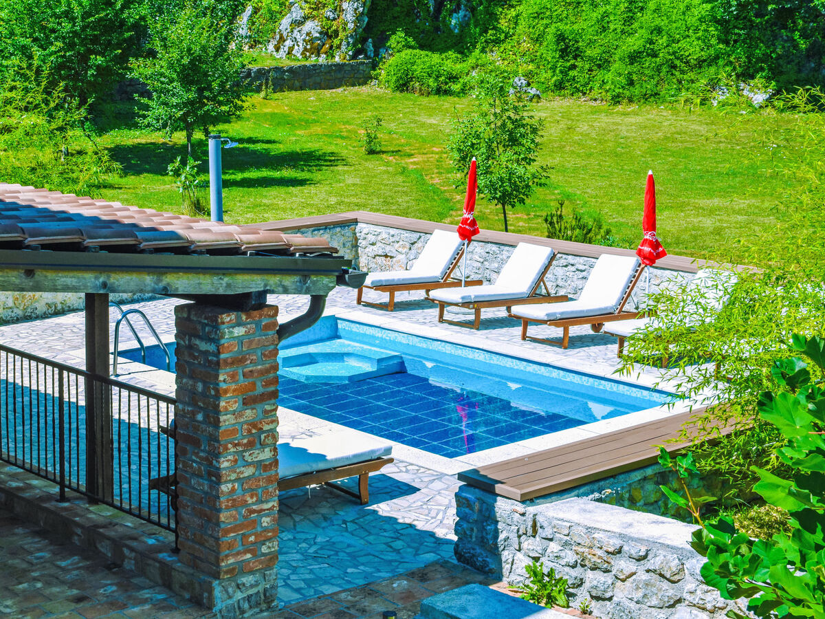 A usage privé: terrain 4'200 m2, pelouse et arbres, piscine (24 m2, profondeur 120 cm, disponibilité saisonnière: 02.Mai.