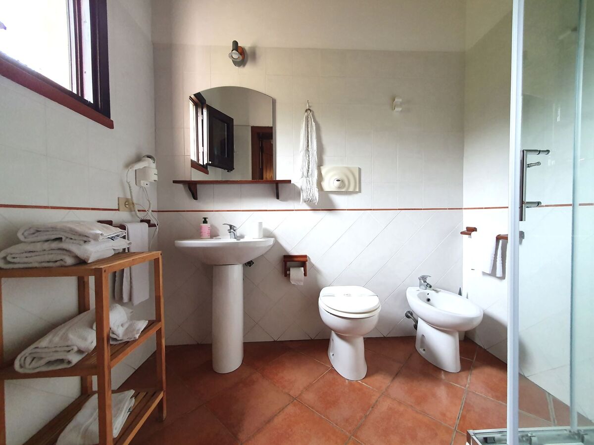 1 chambre double avec douche/bidet/WC, air-conditionné, ventilateur et chauffage à air chaud.