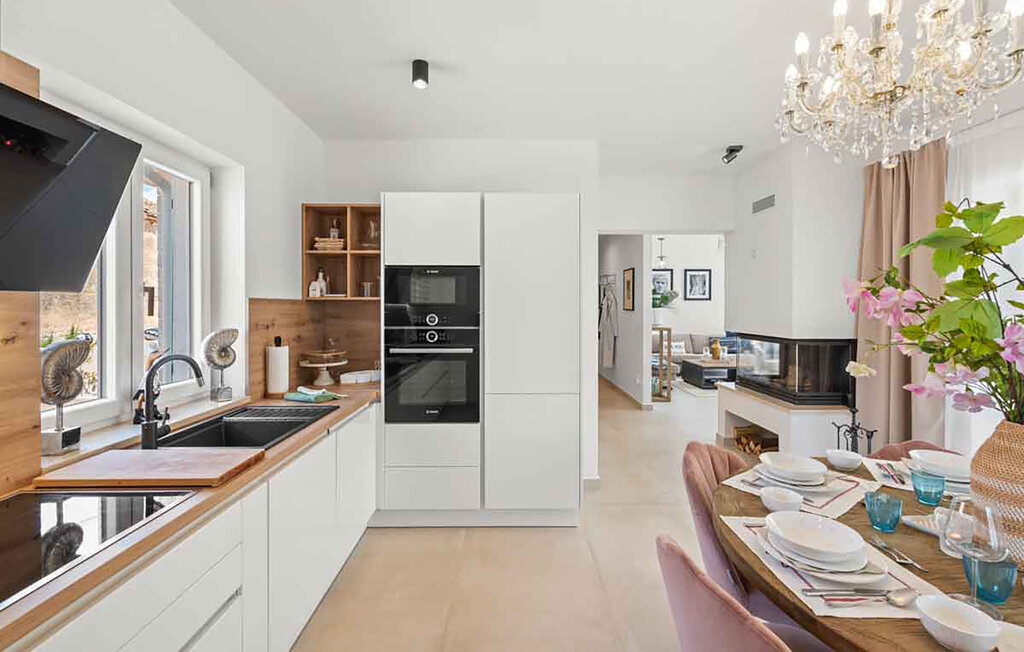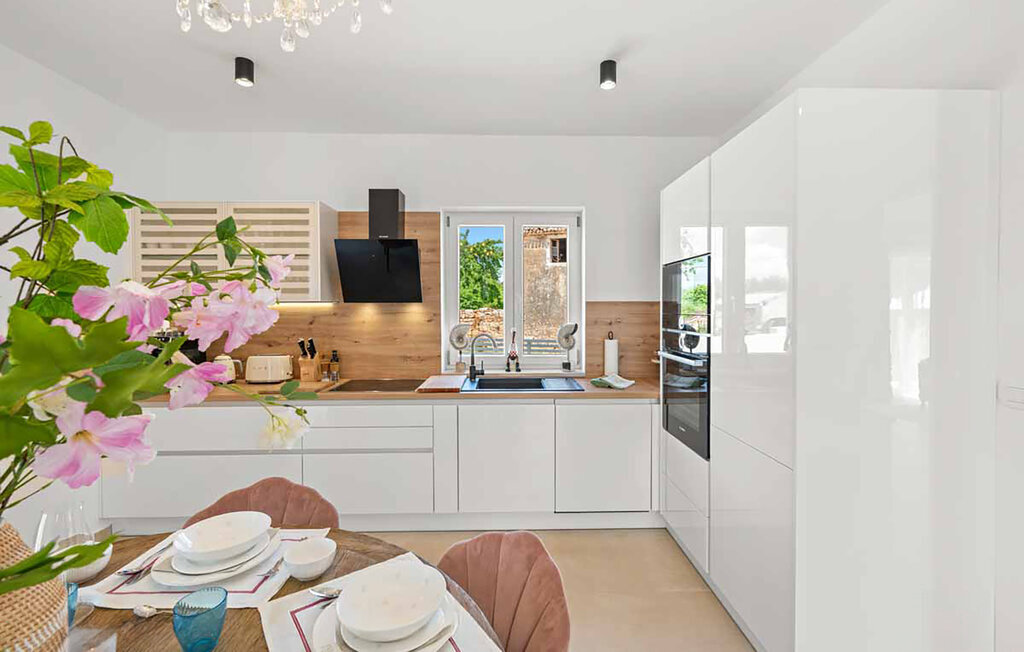 Cette villa design moderne et luxueuse est nichée dans les vignobles et vous accueille avec un mélange réussi de confort moderne et de charme traditionnel. Créez des spécialités culinaires et savourez des repas élégants dans une ambiance lumineuse et agréable. Le soir, écoutez le doux crépitement de la cheminée, discutez autour d'un verre de vin dans le salon confortable ou organisez une soirée de jeux.