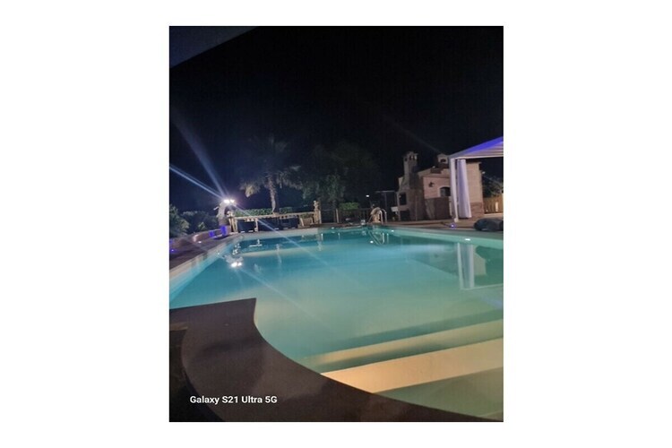 Un point fort est la grande piscine éclairée (12 x 7 m) d'une profondeur de 1,30 m à 2,40 m. Bien sûr, une douche extérieure pour les journées chaudes et des toilettes sont une évidence. Il y a six chaises longues et un coin salon autour de la piscine.
