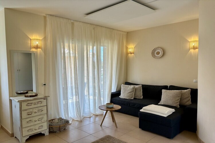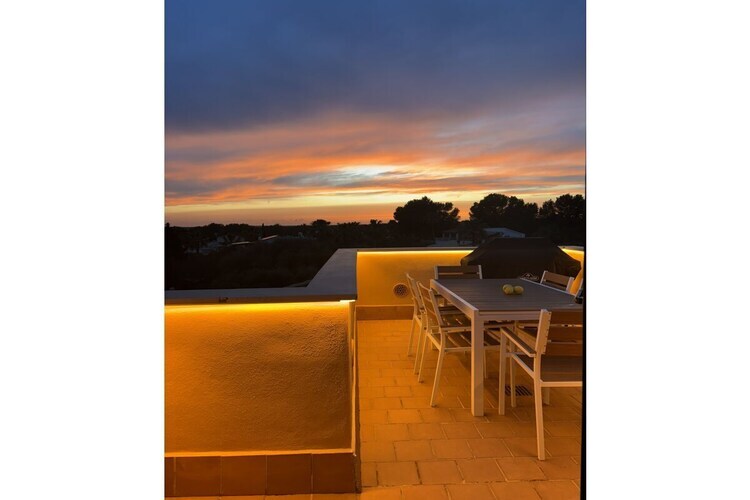 De l'autre côté de la terrasse se trouve le salon, où vous pourrez admirer le coucher du soleil un verre de vin à la main, face à un magnifique panorama s'étendant jusqu'à Es Trenc et l'île de Cabrera.