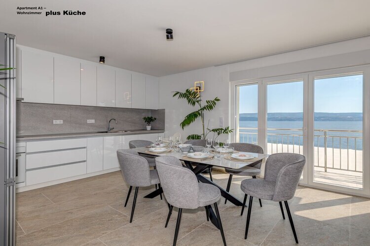 Séjour avec cuisine entièrement équipée (lave-vaisselle, lave-linge, etc.).