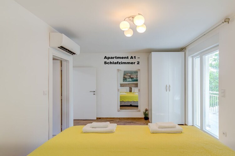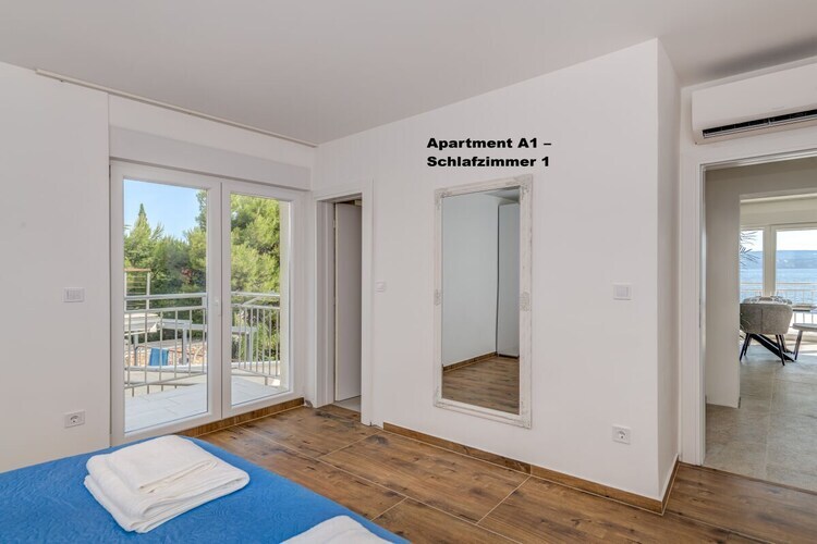 Chambre séparée avec 1 lit double, climatisation et balcon.