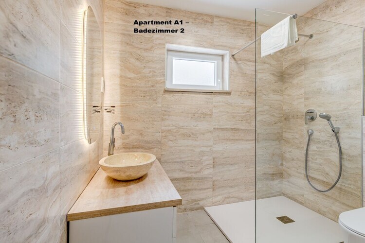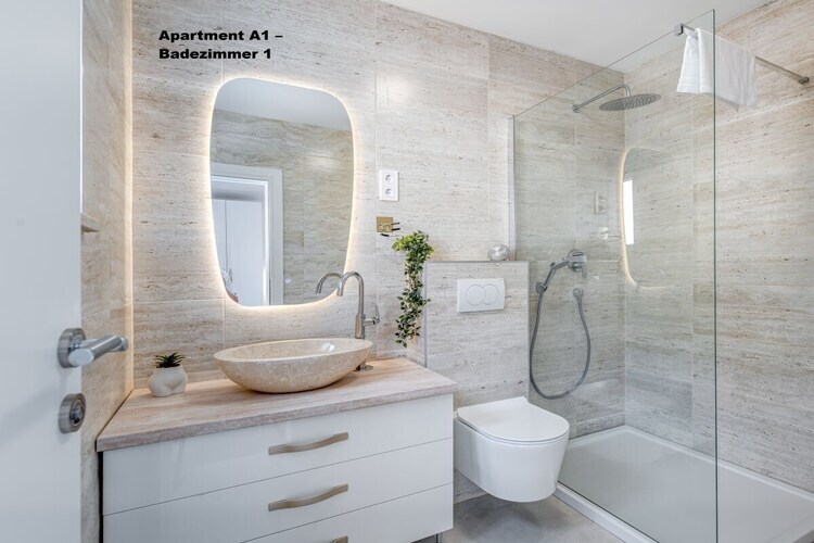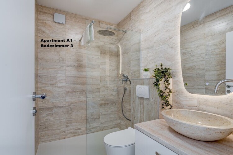 3 chambres, chacune avec salle de bain, WC et climatisation.