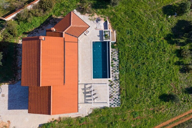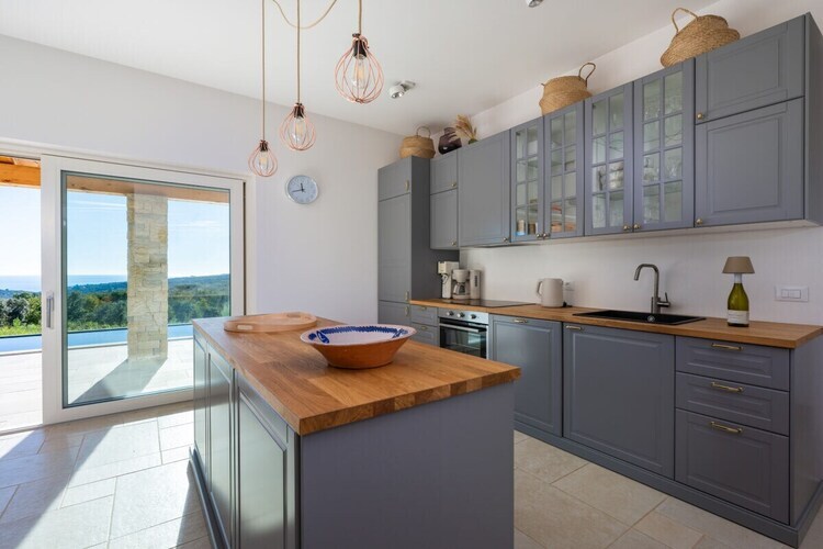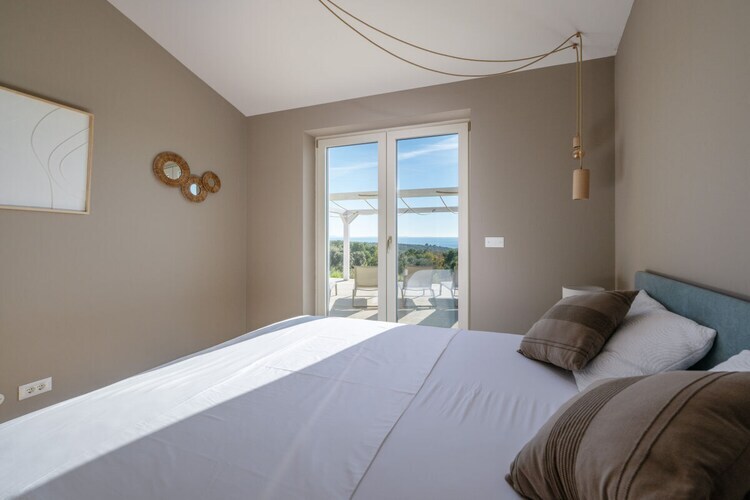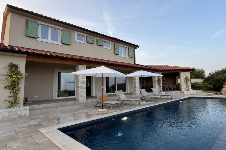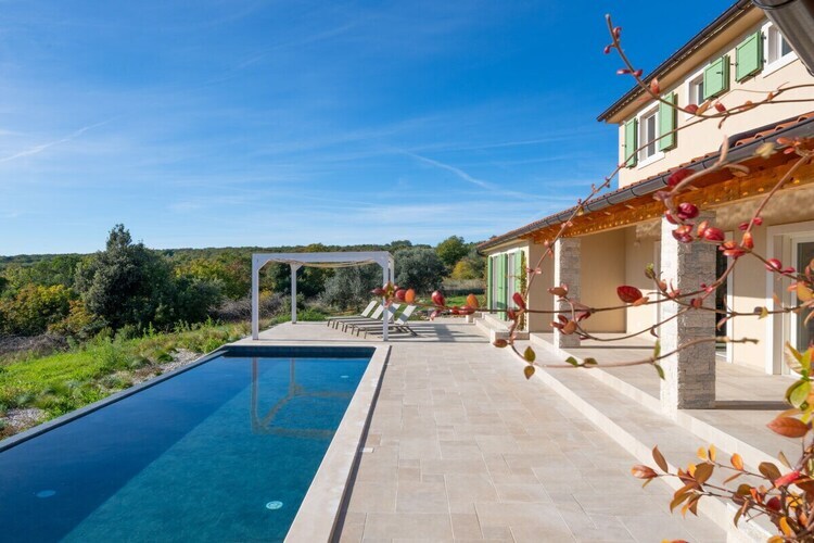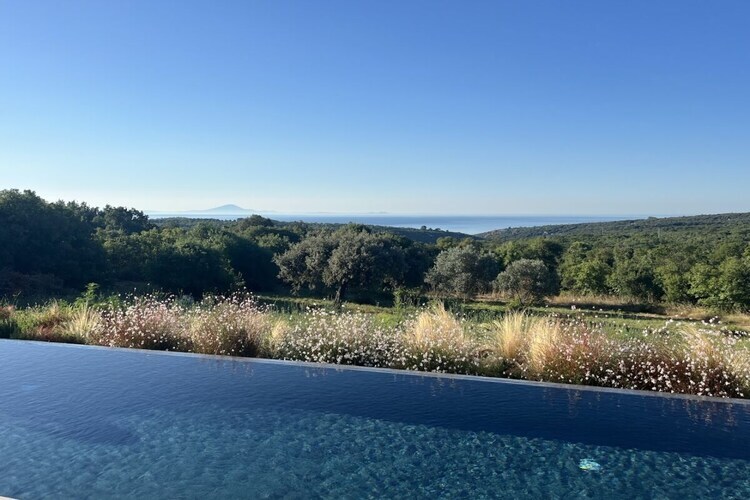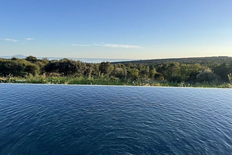 Magnifique villa neuve de 200 m² offrant une vue panoramique imprenable sur la mer et une piscine à débordement de 10 m, sur un terrain de 4 000 m² situé sur la côte sud-est de l'Istrie, une région paisible et préservée.