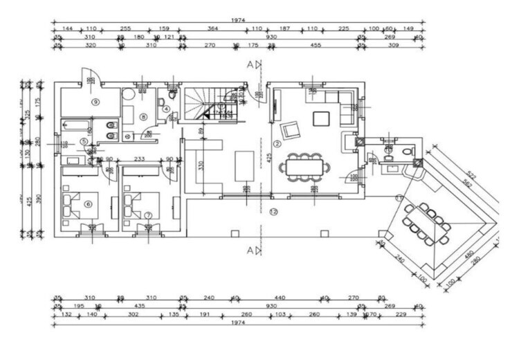 Rez-de-chaussée: (Salle de séjour(TV, table, coin salon), cuisine(foyer, bouilloire, cafetière/percolateur, four/micro-onde combinés, réfrigérateur, ), chambre(lit double), chambre(lit double), chambre(lit double), chambre(lit double), chambre(lit simple, lit simple), salle de bains(baignoire, douche, lavabo, WC), salle de bains(douche, lavabo, WC), salle de bains(douche, lavabo, WC)) Accès Internet, lave-linge , terrasse, parking, piscine, table à repasser, séchoir