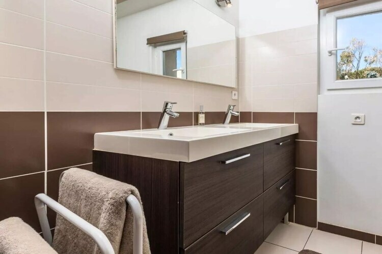 La maison comprend trois chambres, deux salles de bains et des toilettes séparées. Le spacieux séjour dispose d'un coin salon confortable et la cuisine est équipée d'appareils modernes tels qu'un four, une plaque vitrocéramique, un micro-ondes et un lave-vaisselle. La cuisine donne directement sur la terrasse aménagée avec un coin repas, un barbecue, des stores électriques et un coin détente confortable.