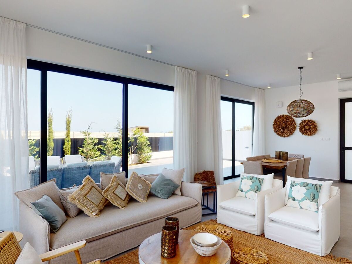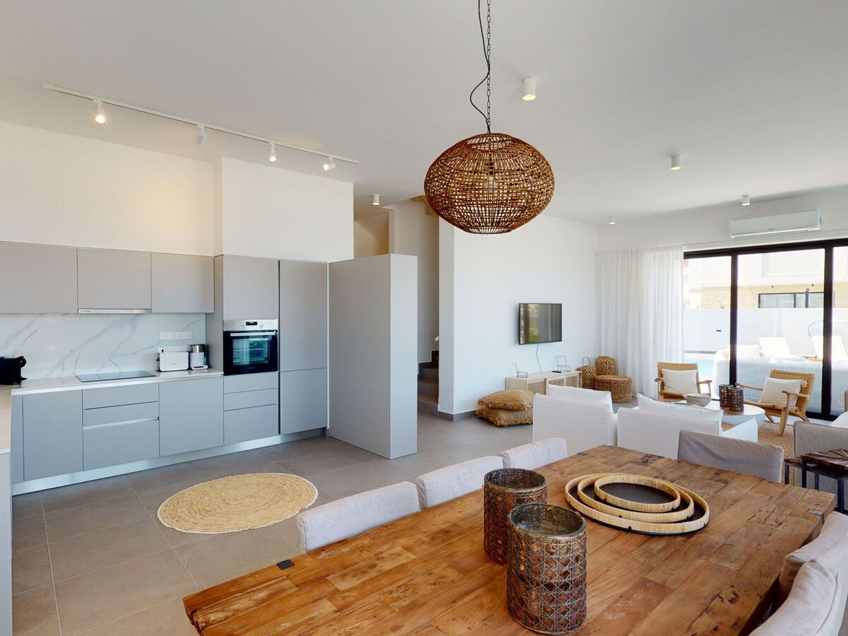 Villa Ismene within the Periyiali Konnos Beach Resort, located in the breathtaking Cape Greco National Park, presents an unparalleled holiday experience that skillfully blends natural beauty with sophisticated living.
