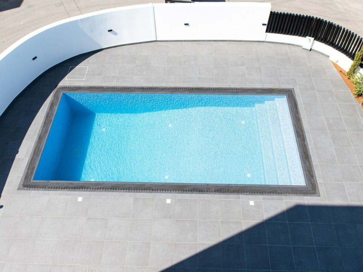 The exterior of Villa Ismene continues to enchant with its private saltwater pool, creating a serene atmosphere for relaxation and leisure.
