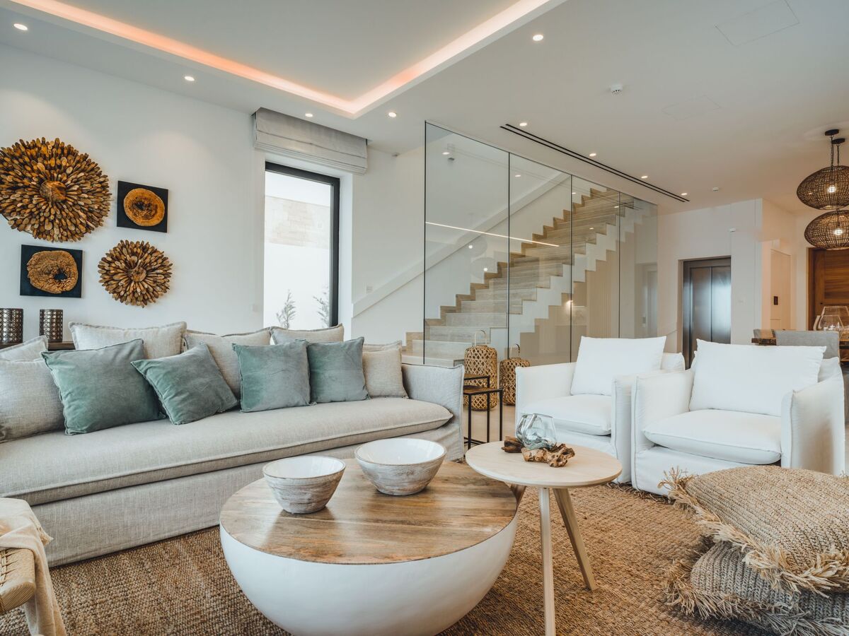 The open-plan kitchen and contemporary living spaces—including en-suite bedrooms equipped with smart TVs—open up to sun-kissed terrace, making every moment inside as breathtaking as the panoramic views outside.