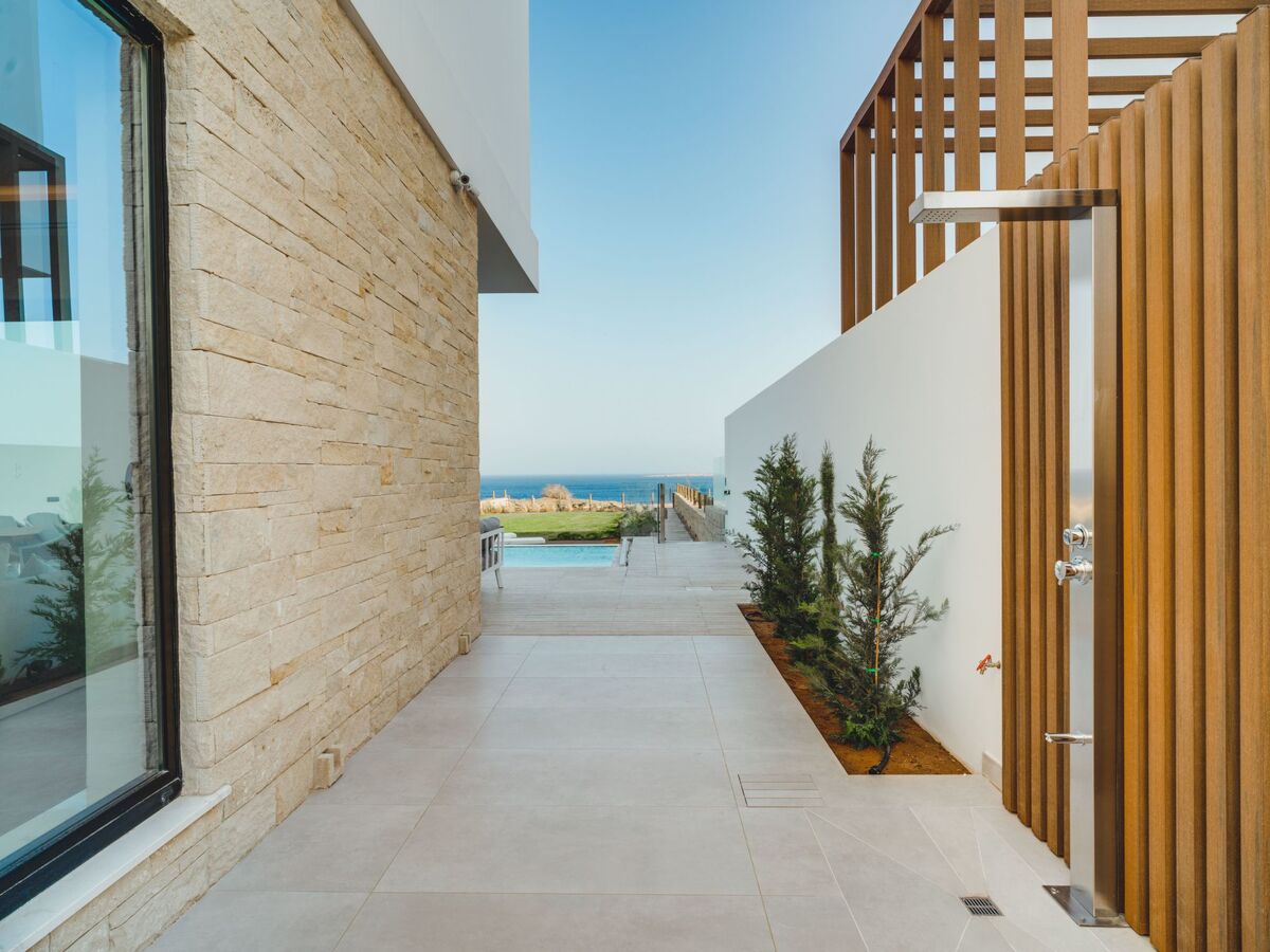Discover an exclusive escape at the Periyiali Konnos Villas Beach Resort, where you can indulge in the luxury and tranquility of a 5 bedroom Front Line Villa Ira, designed with the grace and beauty of the Olympian queen.