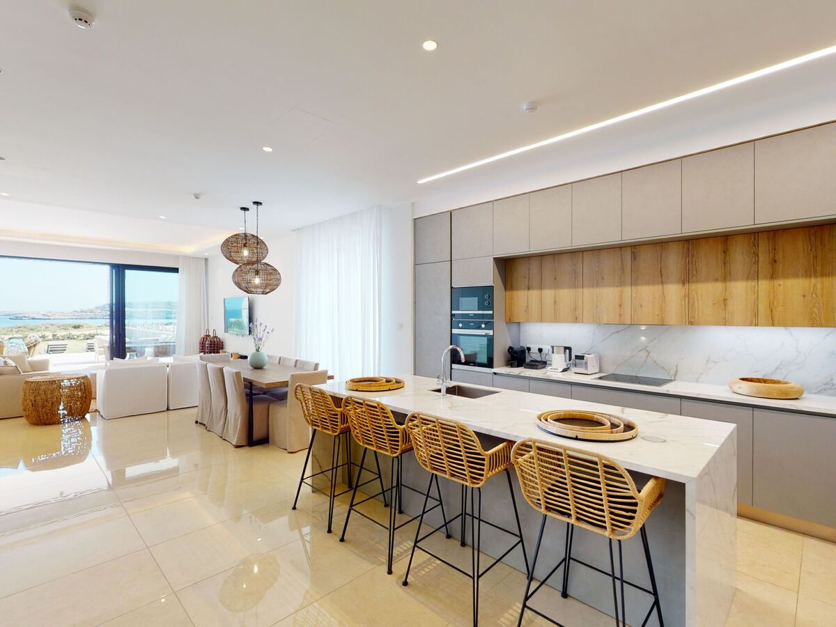 Welcome to the splendor of the 5-bedroom Front Line Villa Artemis, a luxurious jewel nestled at the seafront of Konnos Bay.