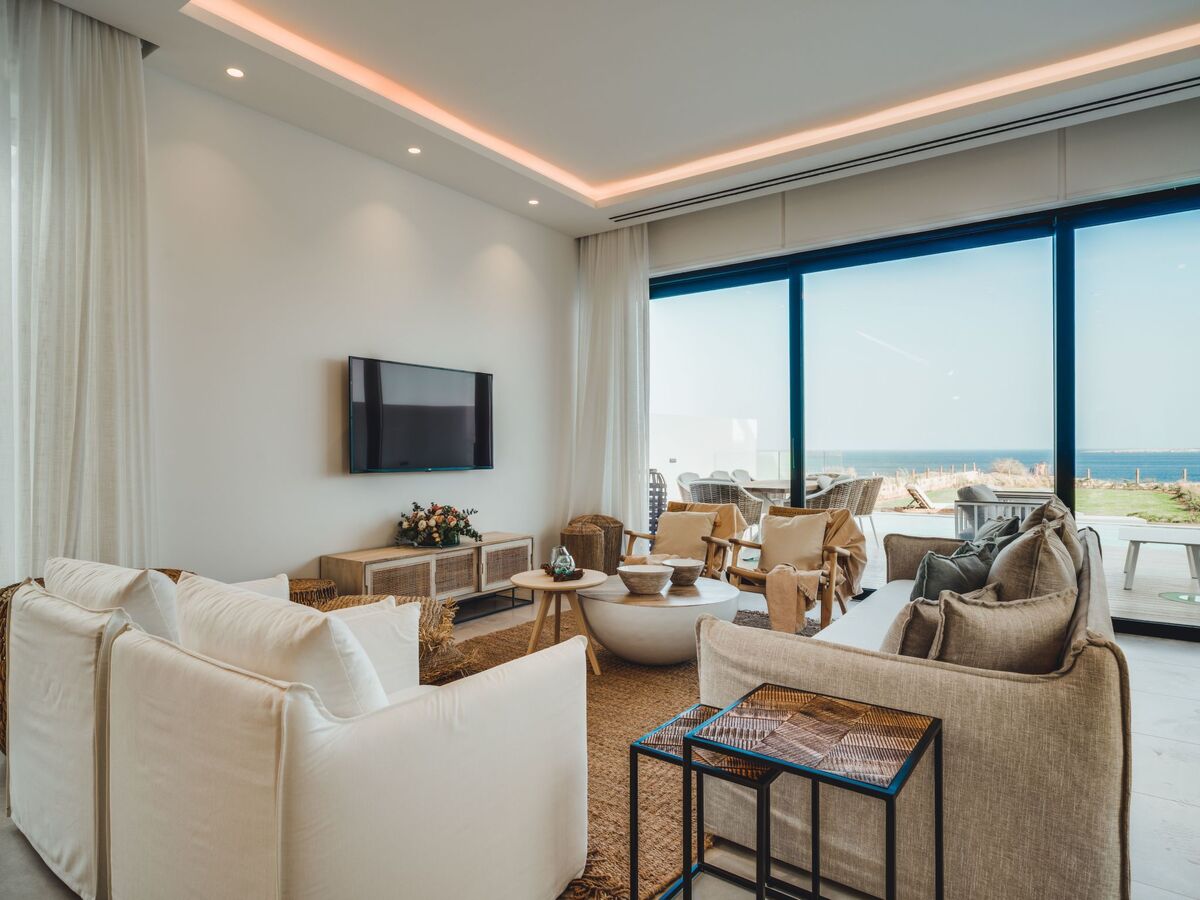 Set within the prestigious Periyiali Konnos Beach Resort, this 5-bedroom marvel offers panoramic sea views that redefine luxury holiday living.
