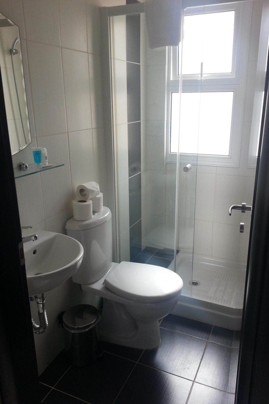 The first floor has two bedrooms, each with their own bathroom (one with a bath, the other with a shower).