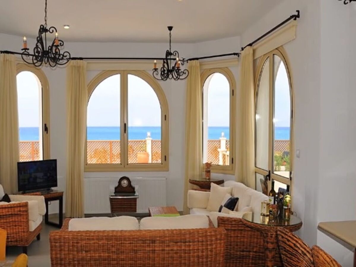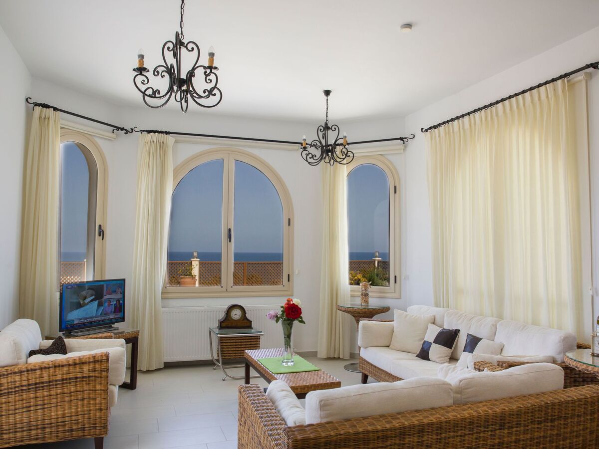 The living area is airy and bright due to the large arched windows, that offer amazing sea views.