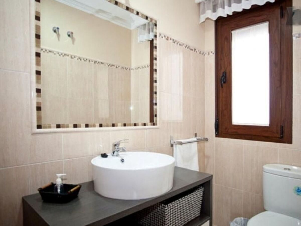 On the ground floor, you will find a spacious living room with air conditioning, an extra bed, a fully equipped kitchen and a toilet.