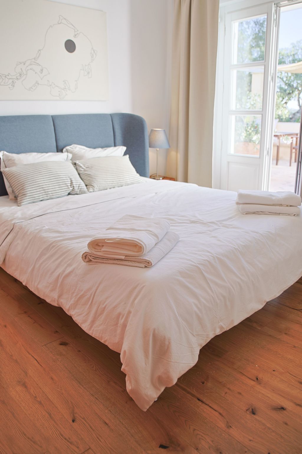 On the ground floor, the master bedroom has a large box-spring bed, an additional sofa bed, dressing room, satellite TV, designer hi-fi system and direct access to the terrace and garden.