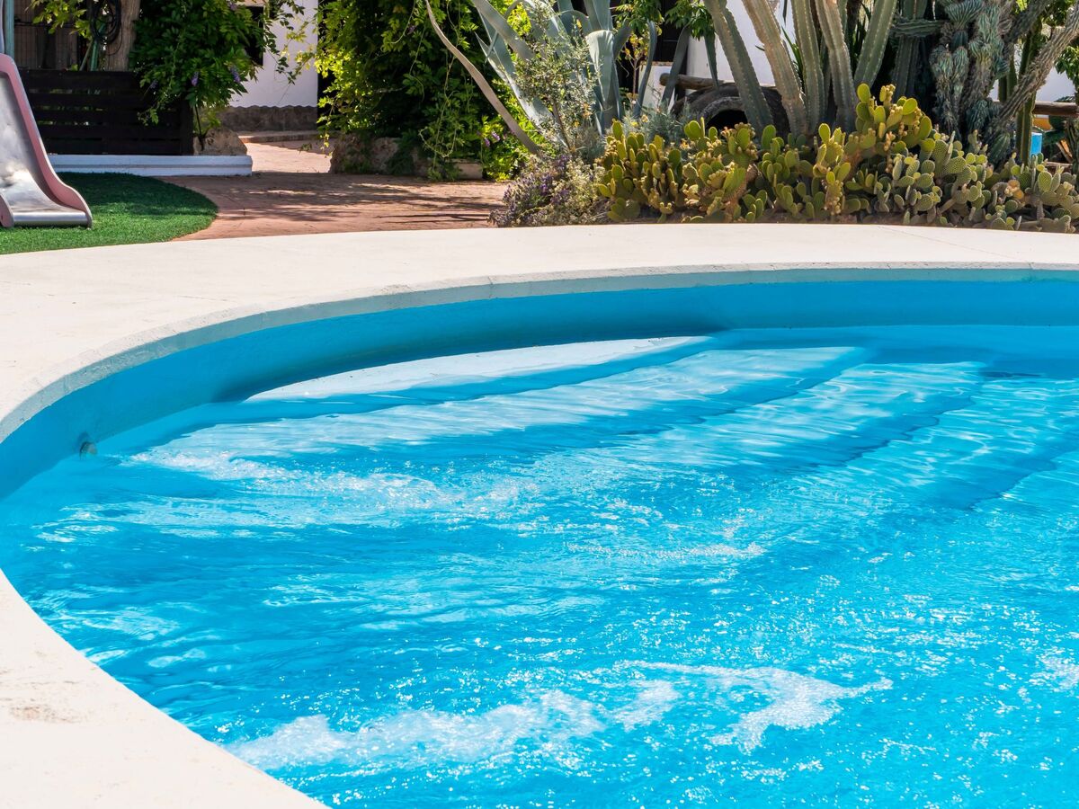Large swimming pool of 8,5 x 4-6 meters kidney shape and depth 1,20 to 1,50 mts.