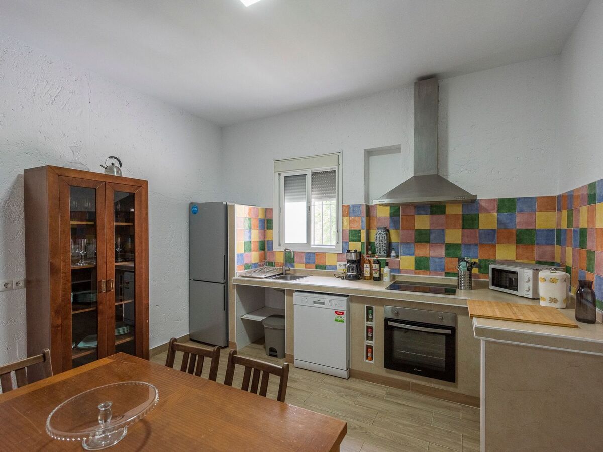 Kitchen with ceramic hob, oven, microwave, coffee maker, toaster, refrigerator, dishwasher, table,...