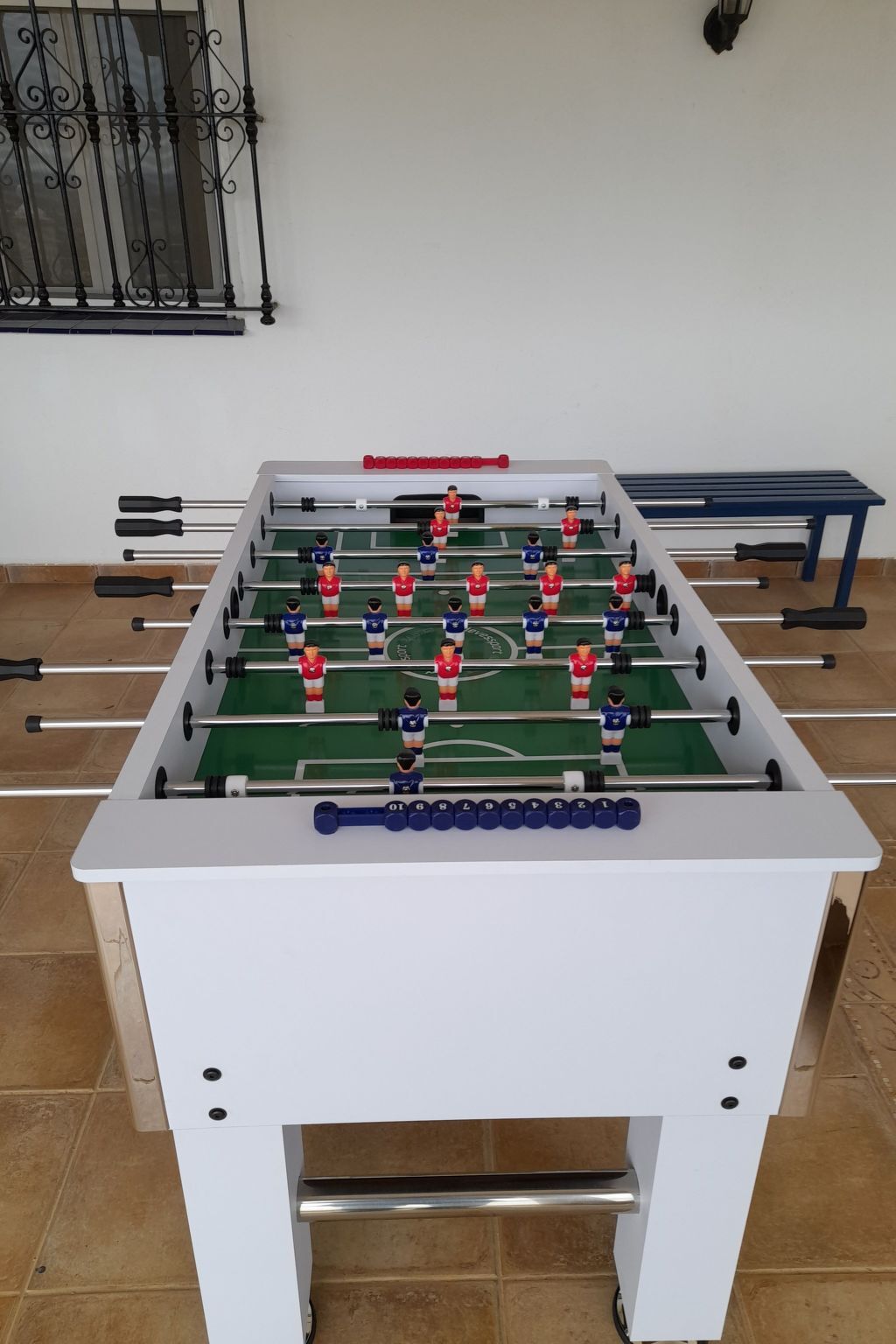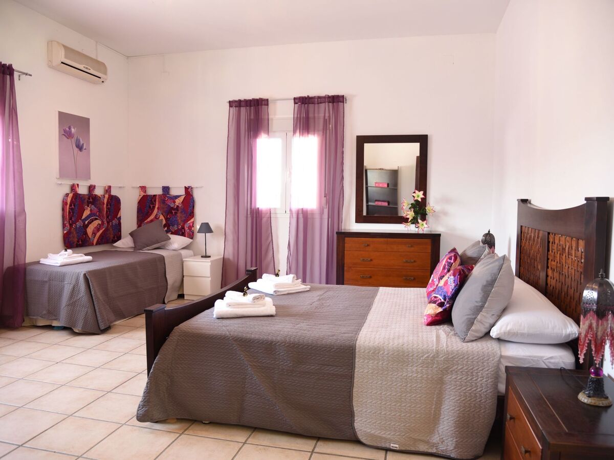 Five large bedrooms, each equipped with a double and a single bed, built-in wardrobes, and air conditioning, ensure a restful night's sleep for up to 14 guests.