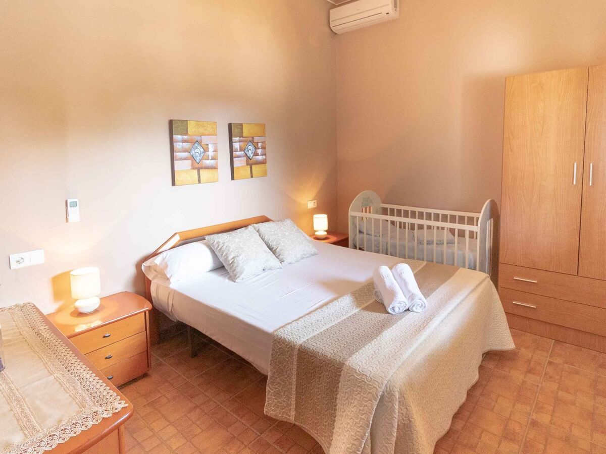 - Bedroom 1: double bed (1.35 x 1.80 m) + cot.