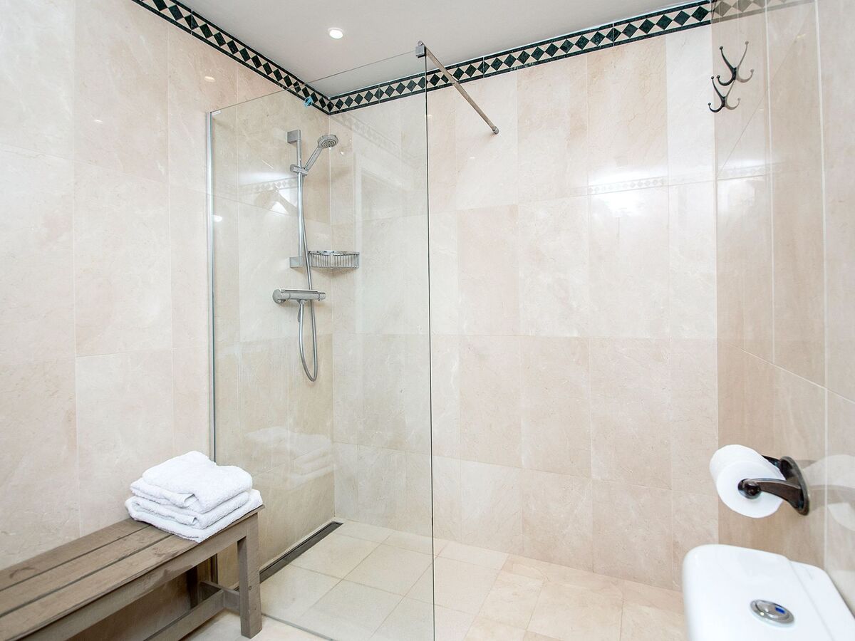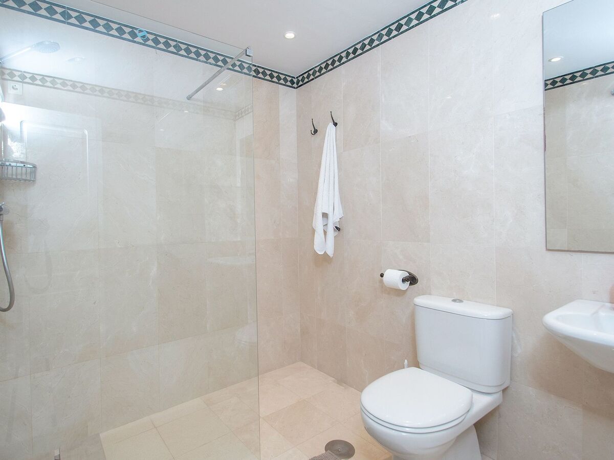 From there and from the master bedroom with 1.80 x 2.00 m bed and en-suite shower room, you have access to the very spacious main terrace.