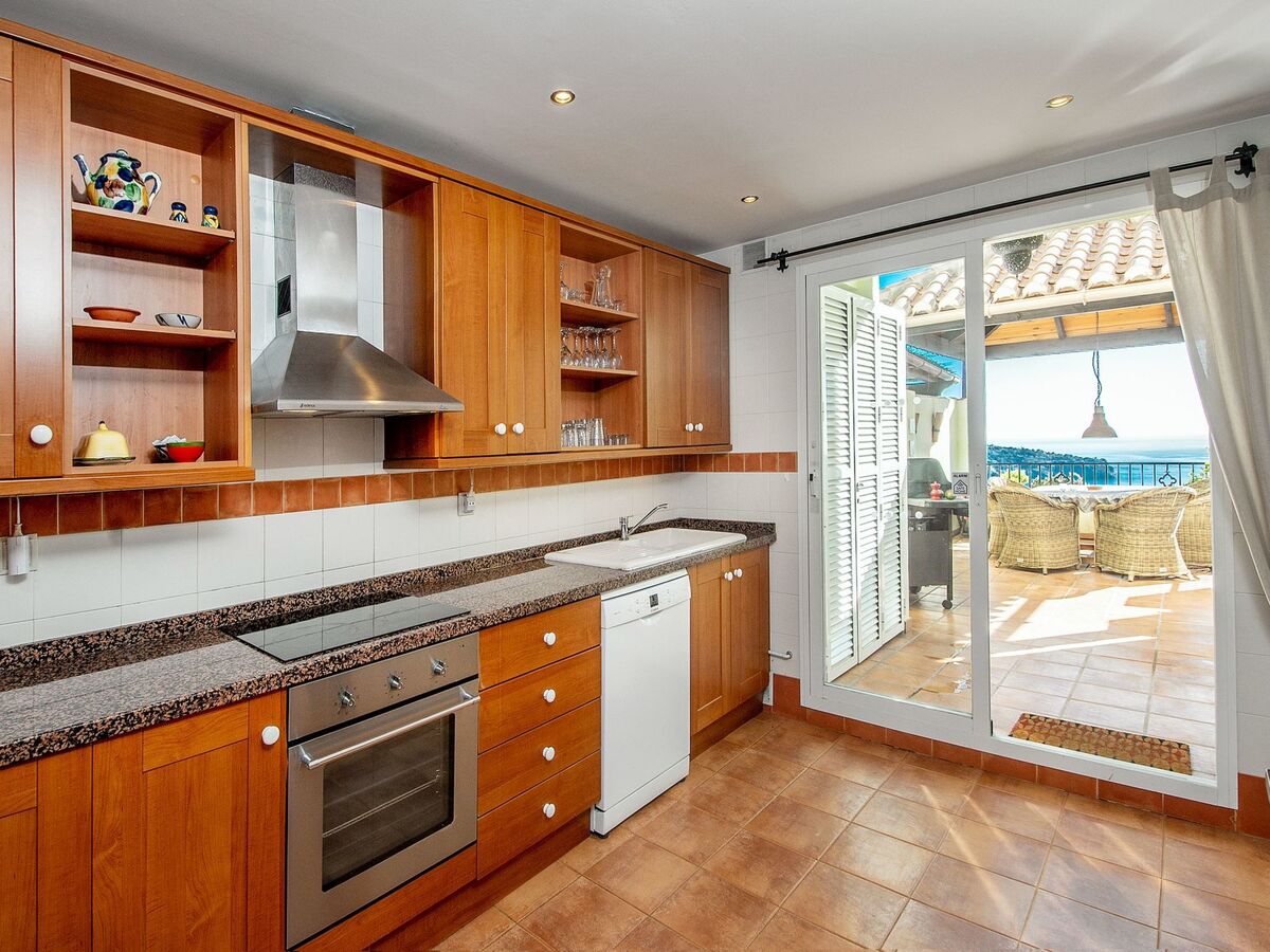 A newly built outdoor kitchen with gas barbecue, hob, sink and small fridge is the highlight of the large terrace on the lower level.