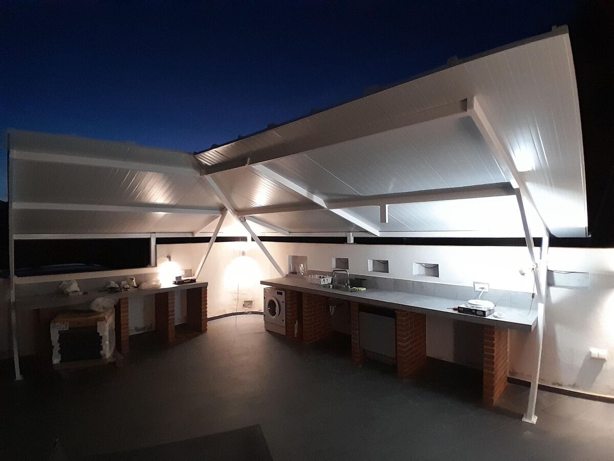 The holiday home has 3 bedrooms, a bathroom and a large area with a covered outdoor kitchen and open designer lounge.