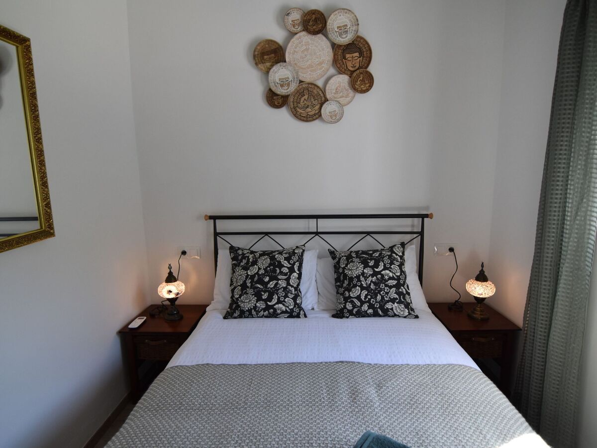 The first bedroom is a single with a bunk bed (no air conditioning), the second bedroom has a king-size bed (150 cm), air conditioning, and a wardrobe, and the third bedroom also has a double bed (135 cm), air conditioning, and a wardrobe.