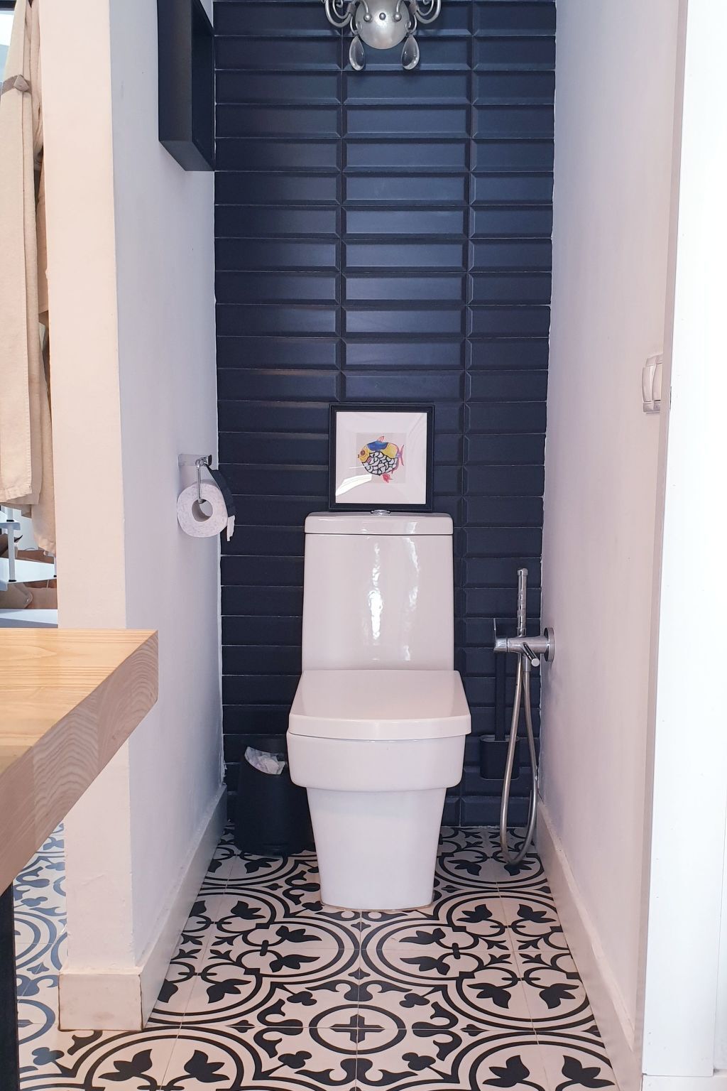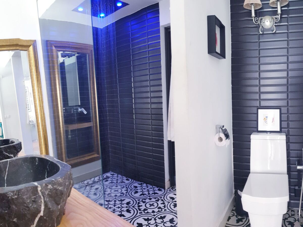 Attached, the bathroom with shower offers a revitalising experience thanks to the colour therapy, creating an atmosphere of total relaxation.