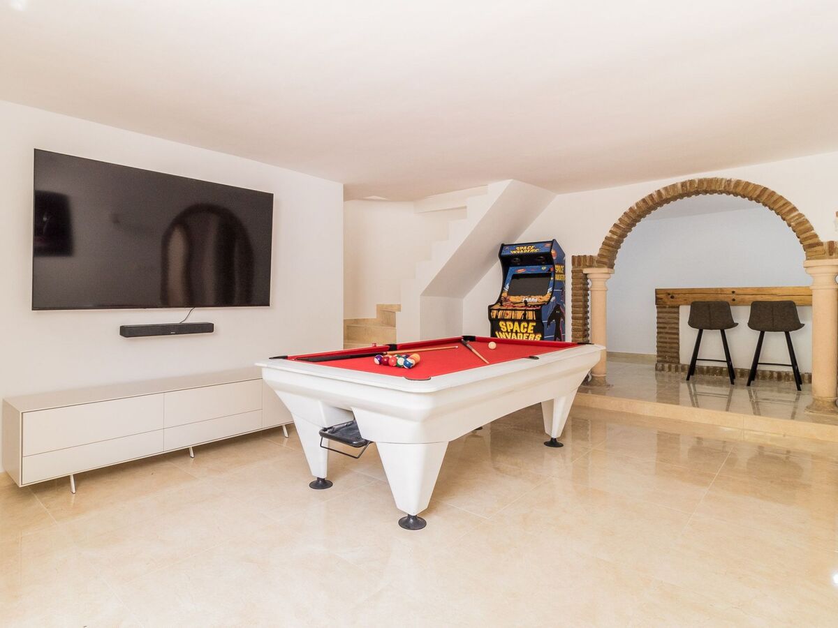 Enjoy an unforgettable family stay in this fantastic accommodation with ample space for entertainment, such as a bar area with a pool table, a video game machine and a living room with a large smart TV.