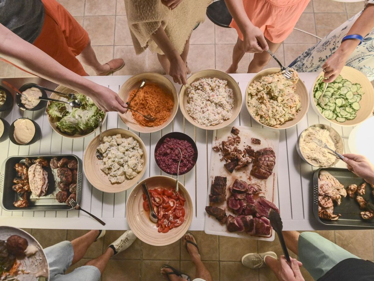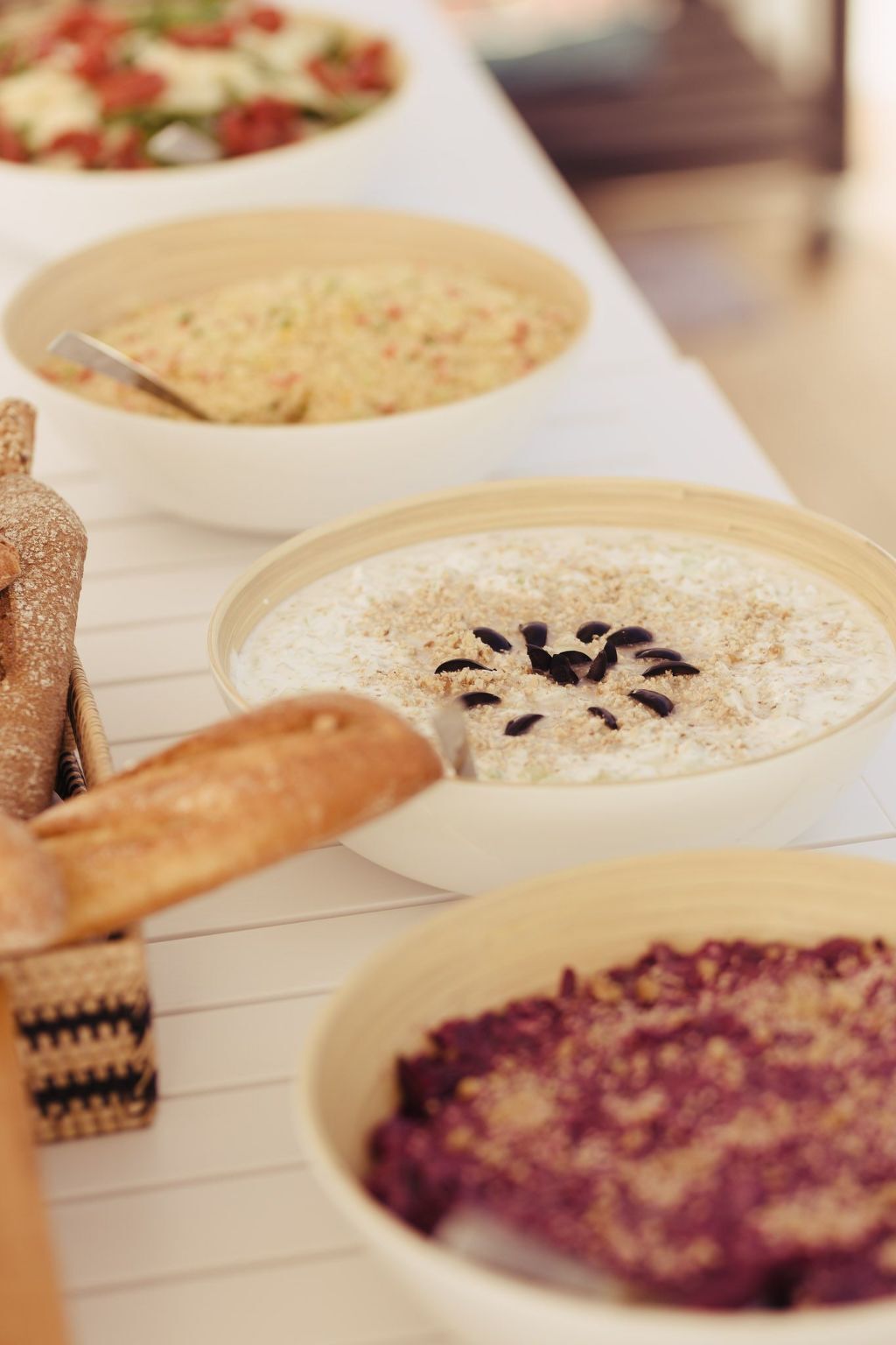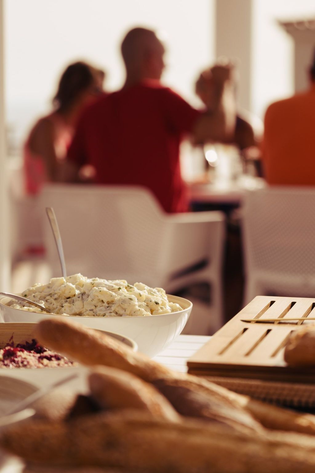 La salle de petit-déjeuner se trouve à l'étage sur la terrasse sous forme de buffet avec sa propre cuisine extérieure où nous préparons des œufs frais pour vous le matin.