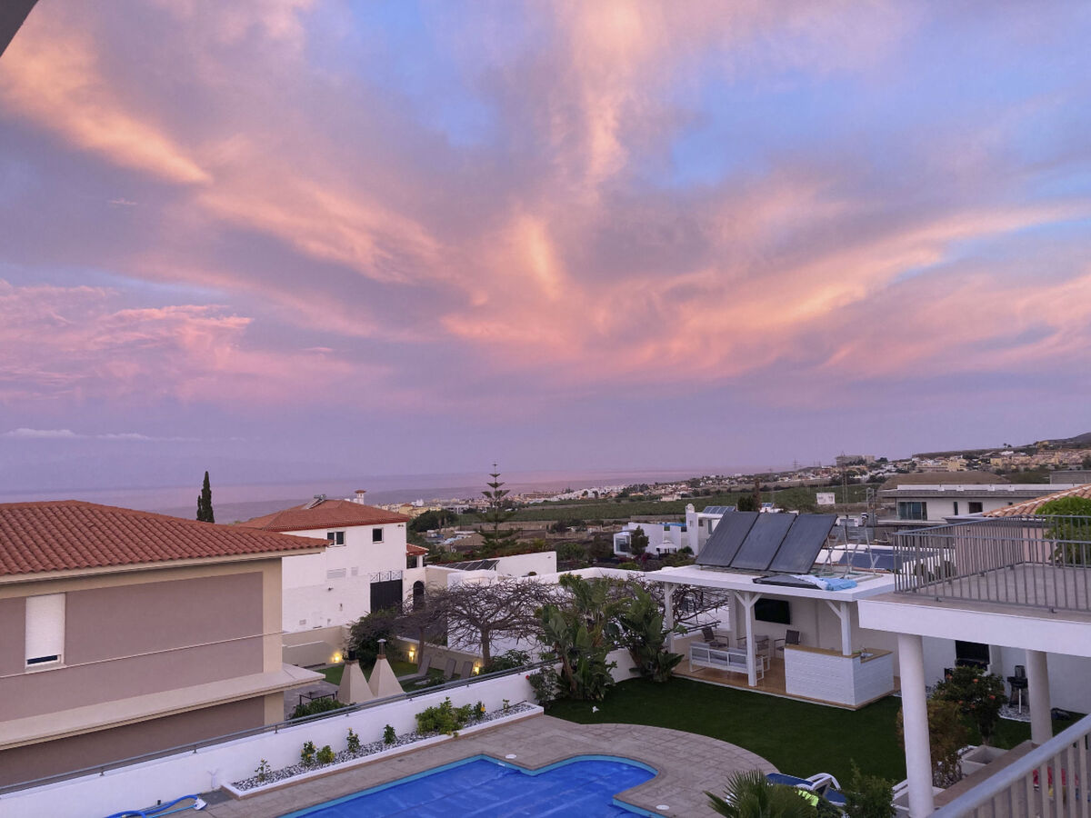 Depuis le jacuzzi, vous pouvez voir le magnifique coucher de soleil dans la mer à côté de l'île de La Gomera.