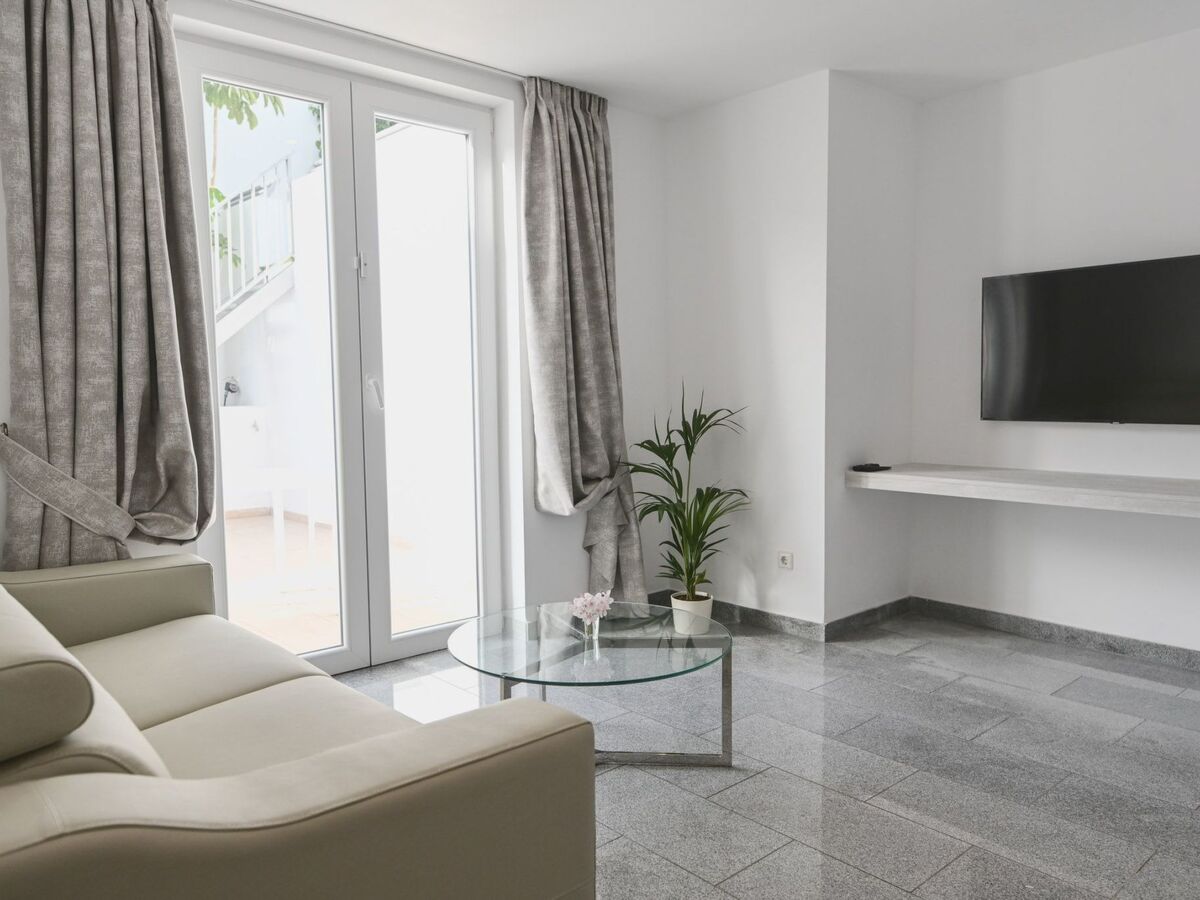 Puesta de Sol est une suite avec un lit king size, un salon avec minibar et bureau, une salle de bain attenante avec toutes les commodités nécessaires telles que serviettes, gel douche, shampooing, sèche-cheveux, ......